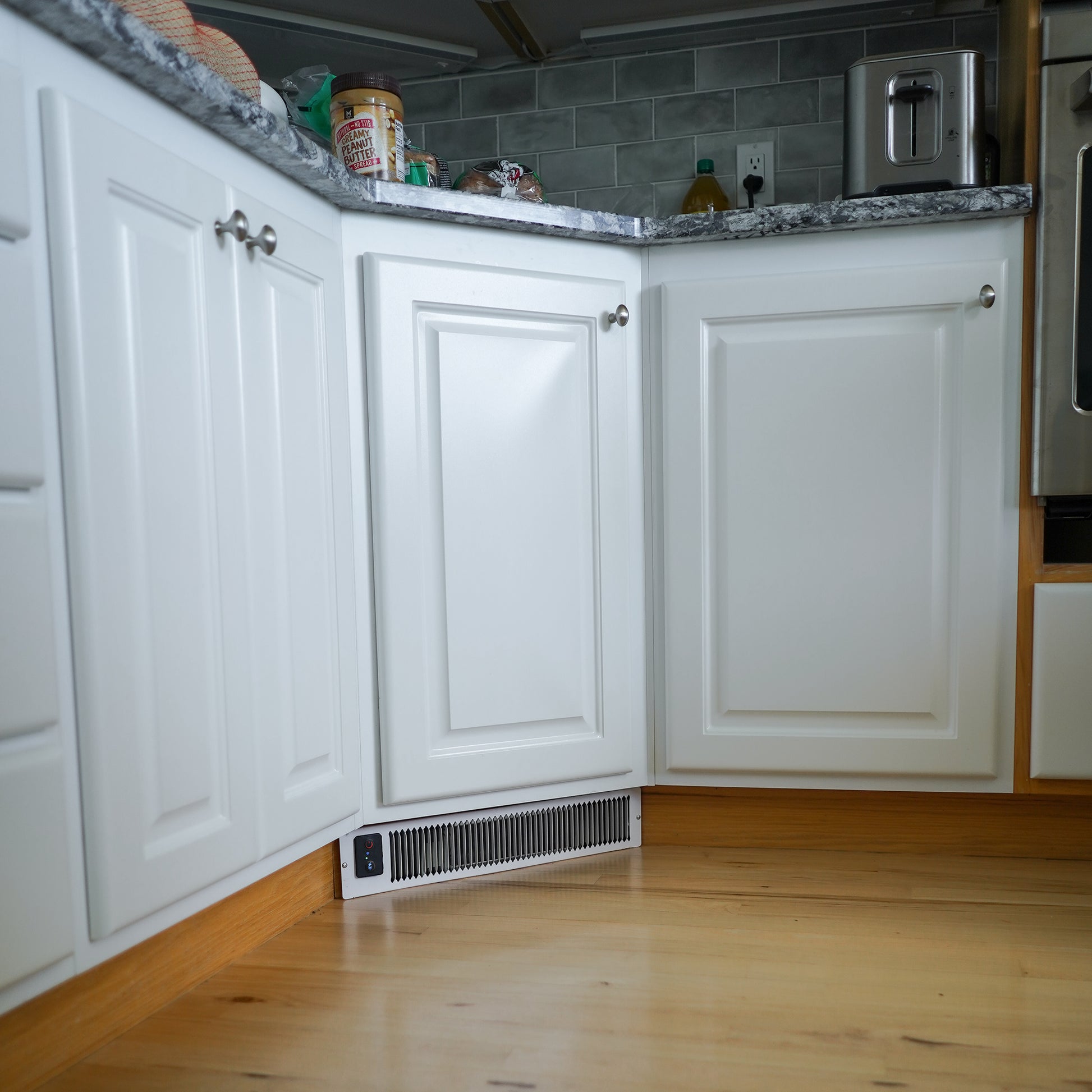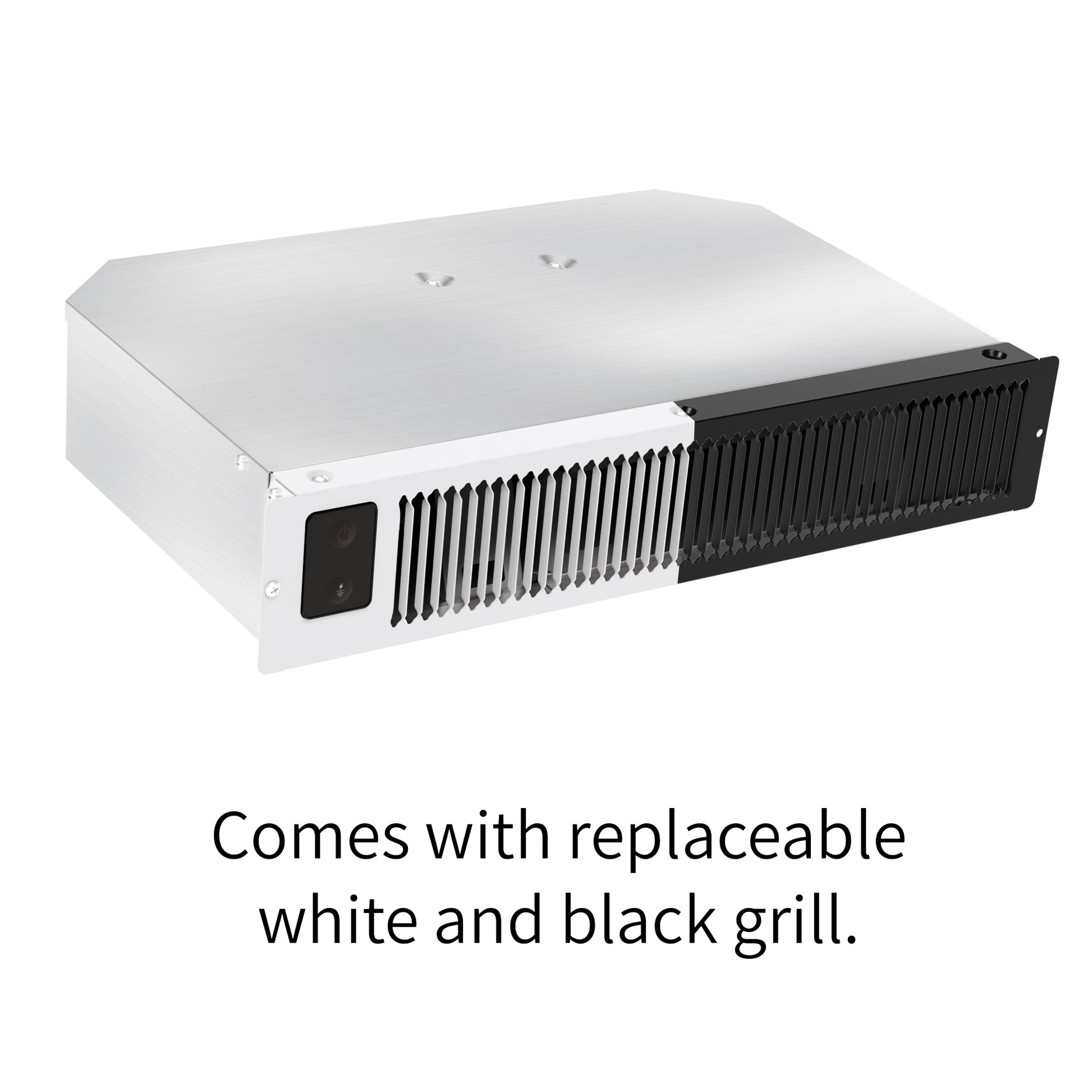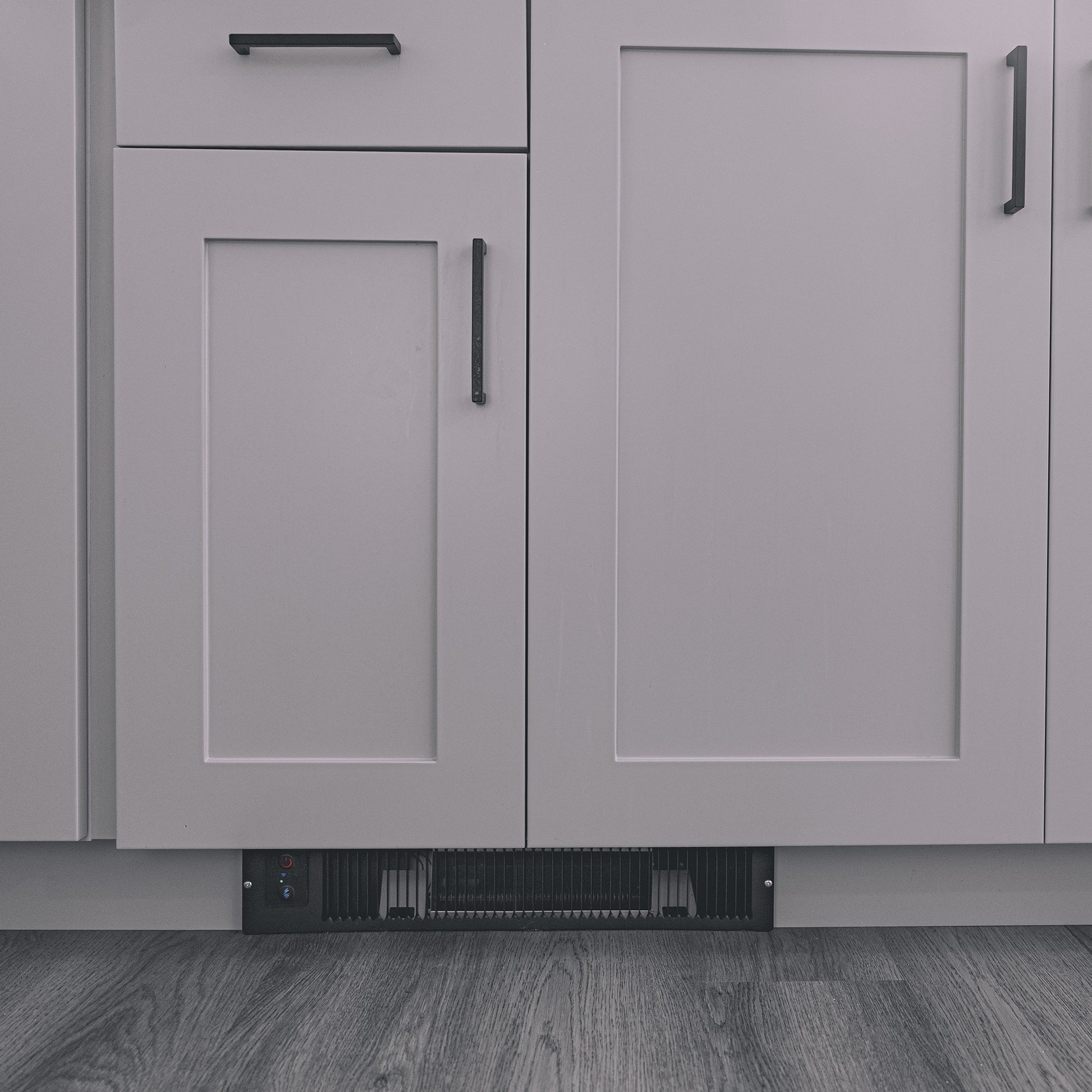 Choose between dual power settings; 1500 Watts or 750 Watts. It's designed to fit easily under kitchen and bath cabinets, coming pre-wired with a traditional three-prong electrical plug and can also be hardwired.